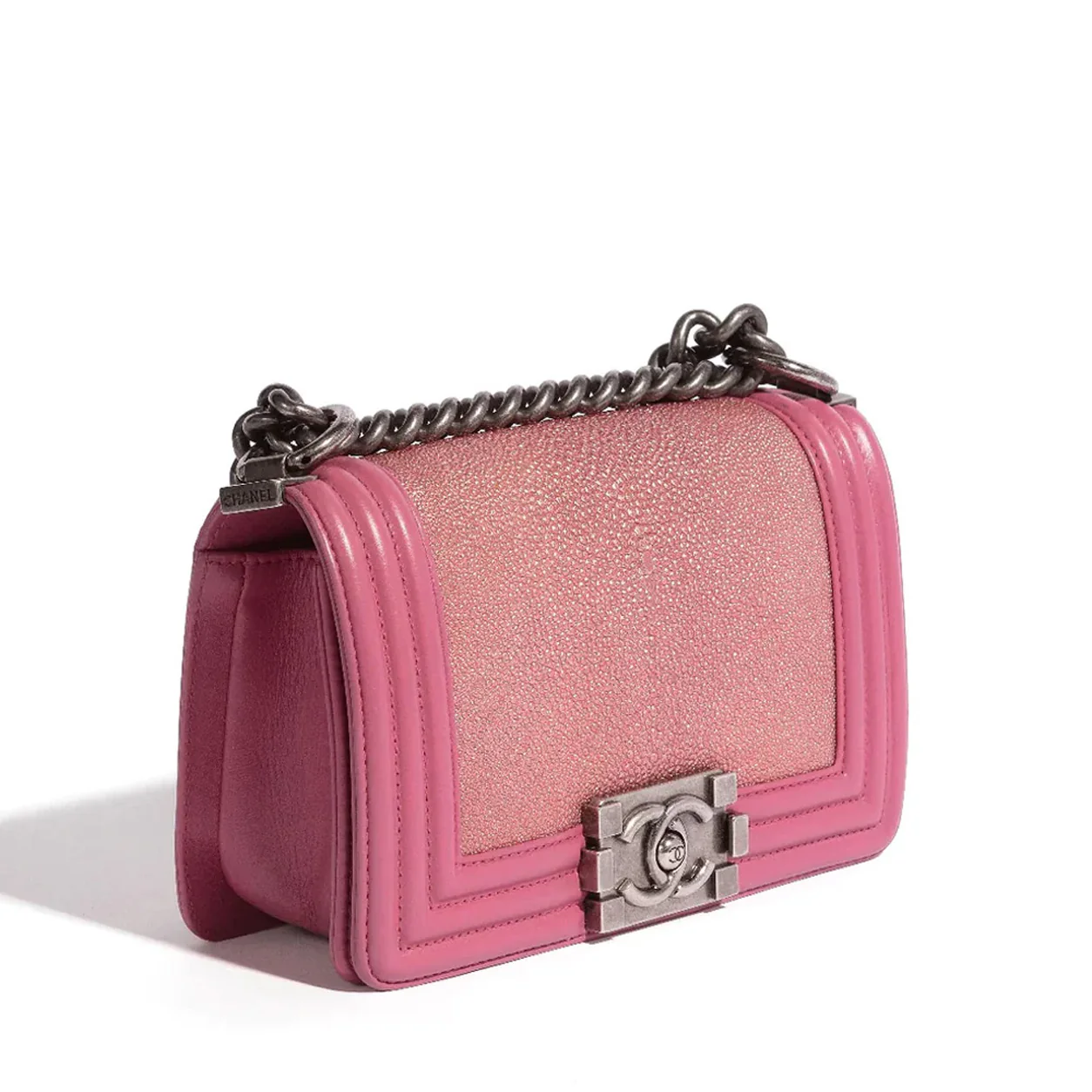 Chanel Boy Bag Pink Galuchat Ruthenium - Preloved
