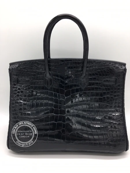 Hermes Birkin 35cm Black Shiny Croc PHW - Preloved