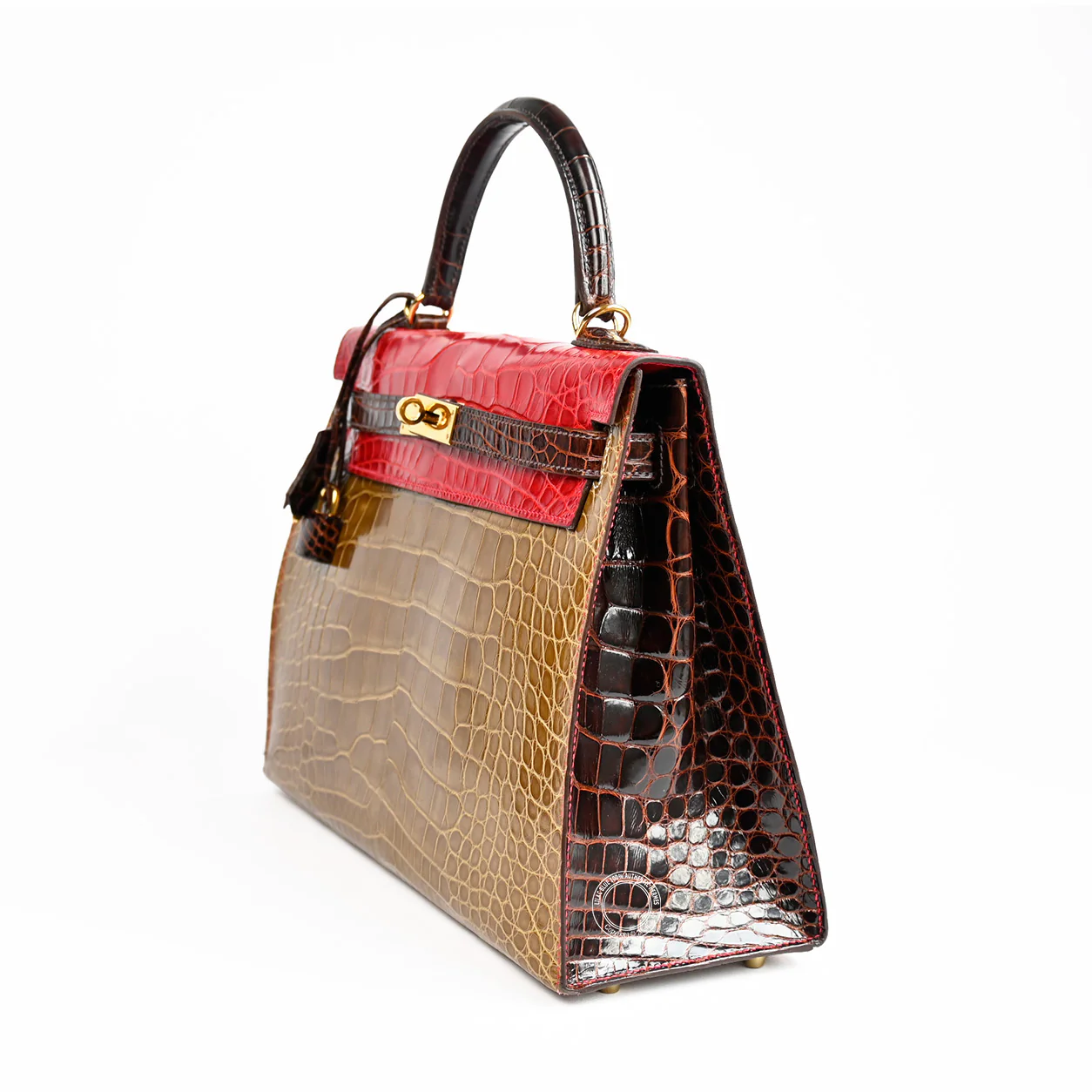 Hermès Kelly 32 Paille/Rouge Braise/Ebene HSS Matte Alligator GHW - Preloved
