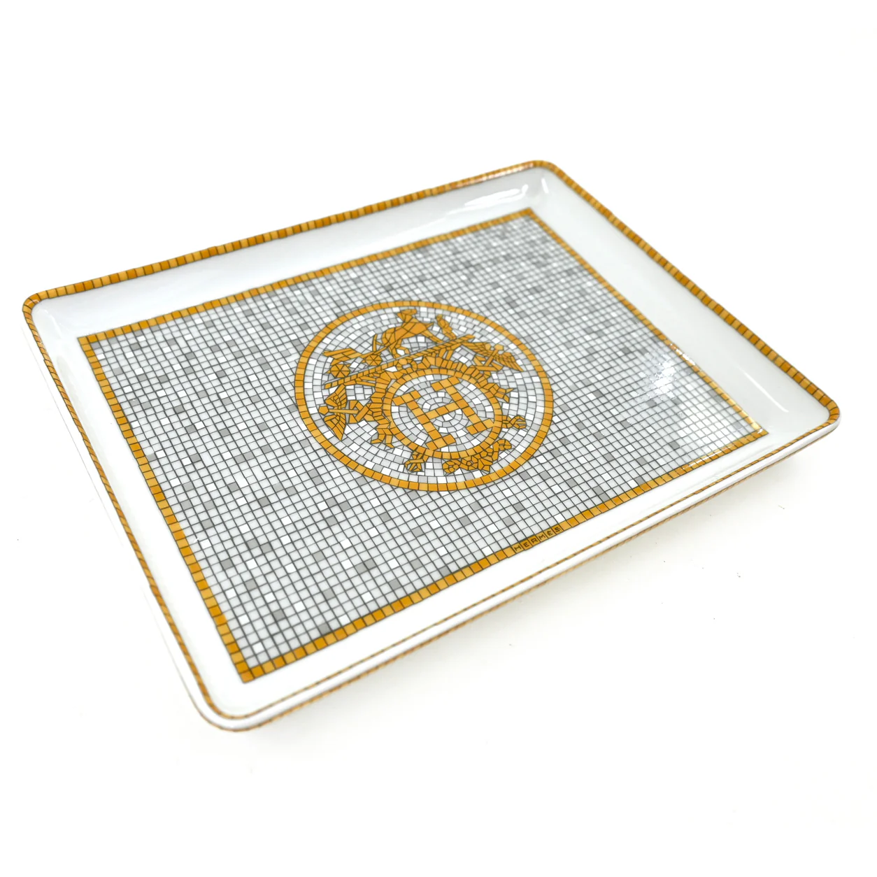 Elevate your home decor with the exquisite Hermès Mosaique au 24 Tray, a true masterpiece that captures the essence of Parisian luxury. Crafted from fine porcelain, this tray is adorned with a stunning geometric pattern, meticulously designed by the celebrated Benoit Pierre Emery. The intricate design pays homage to the iconic decor of Hermès' flagship store at 24 Faubourg Saint-Honore, Paris, infusing a touch of timeless elegance into any space.