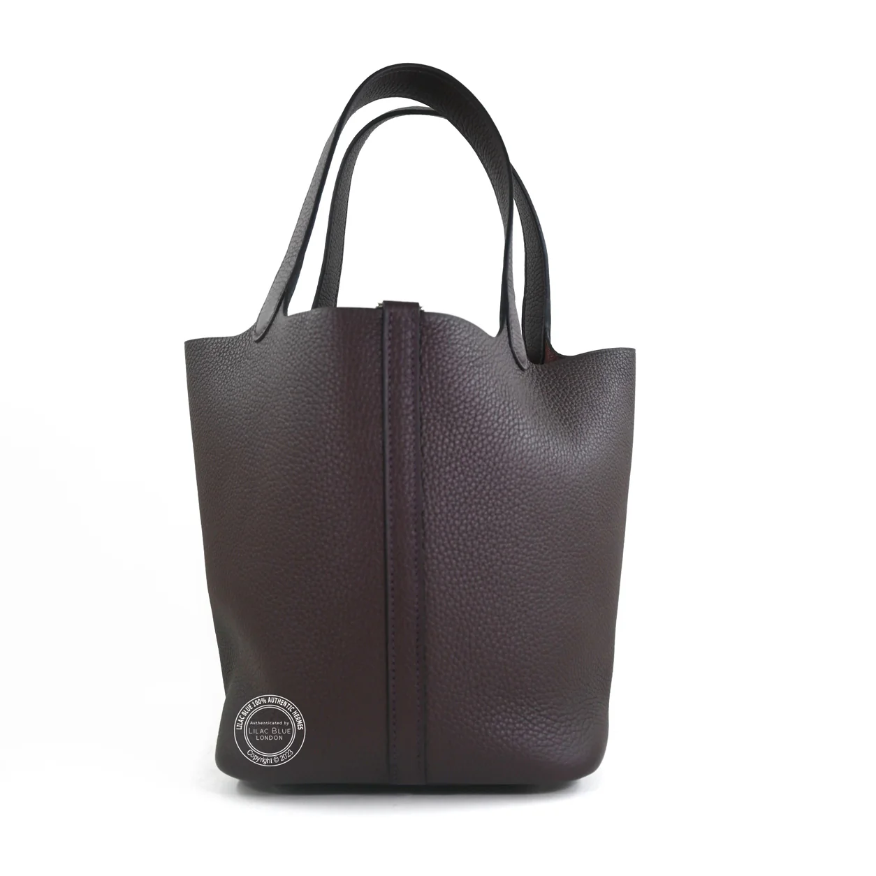 The Hermès Picotin measures 22cm in height and width, with a depth of 18cm, showcasing a slouchy bucket tote design inspired by a horse’s feed bag.
