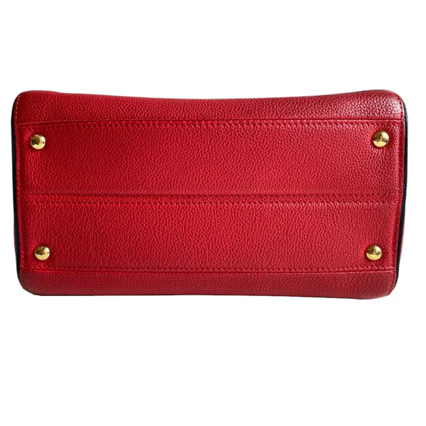 The luxurious red calf leather is beautifully contrasted by the gold hardware, adding a touch of opulence to this coveted piece. While it remains in very good condition, with minor scratches on the feet and hardware, and a few small black marks on the back, these subtle imperfections are a testament to its storied past and add character to its timeless appeal.