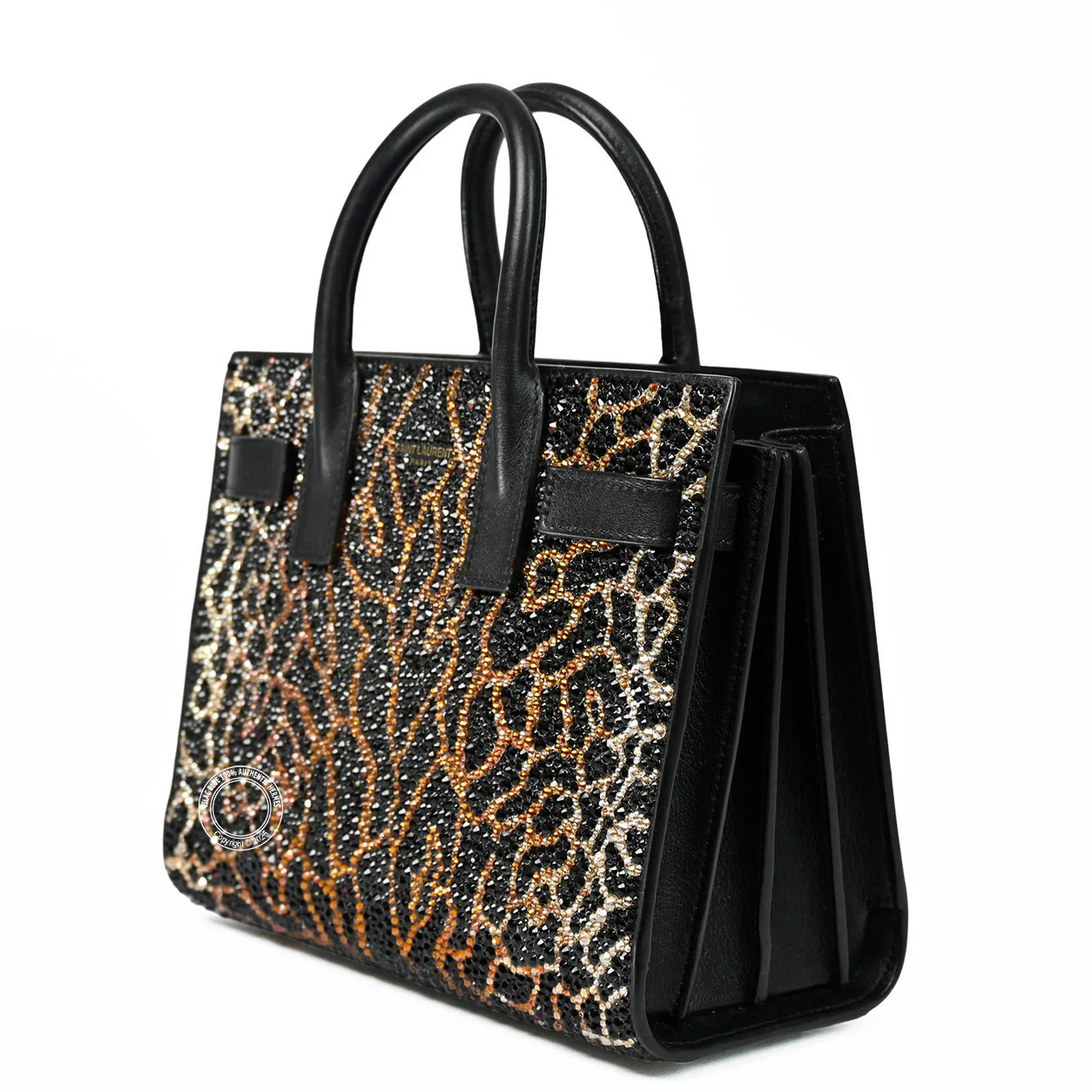 Saint Laurent Sac de Jour Nano Black/Leopard Calfskin with Swarovski Crystals - Preloved